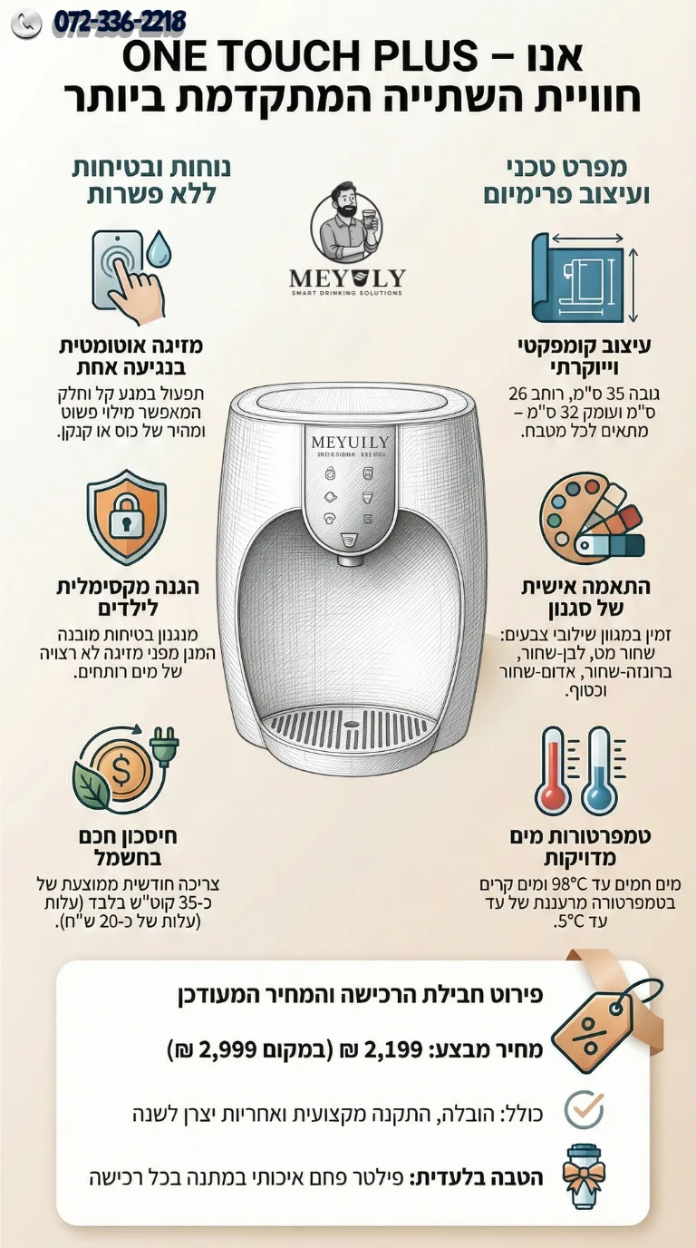 💎 ONE TOUCH PLUS – נראות פרימיום, תפעול חכם, מים מושלמים בכל רגע